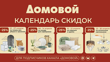 Календарь скидок для подписчиков канала «Домовой»